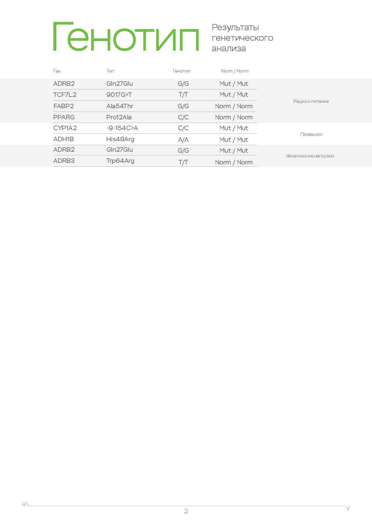 | Отчёт Light (Лайт) | Отчёт Fit (Фигура) | Отчёт Wellness (ЗОЖ) |