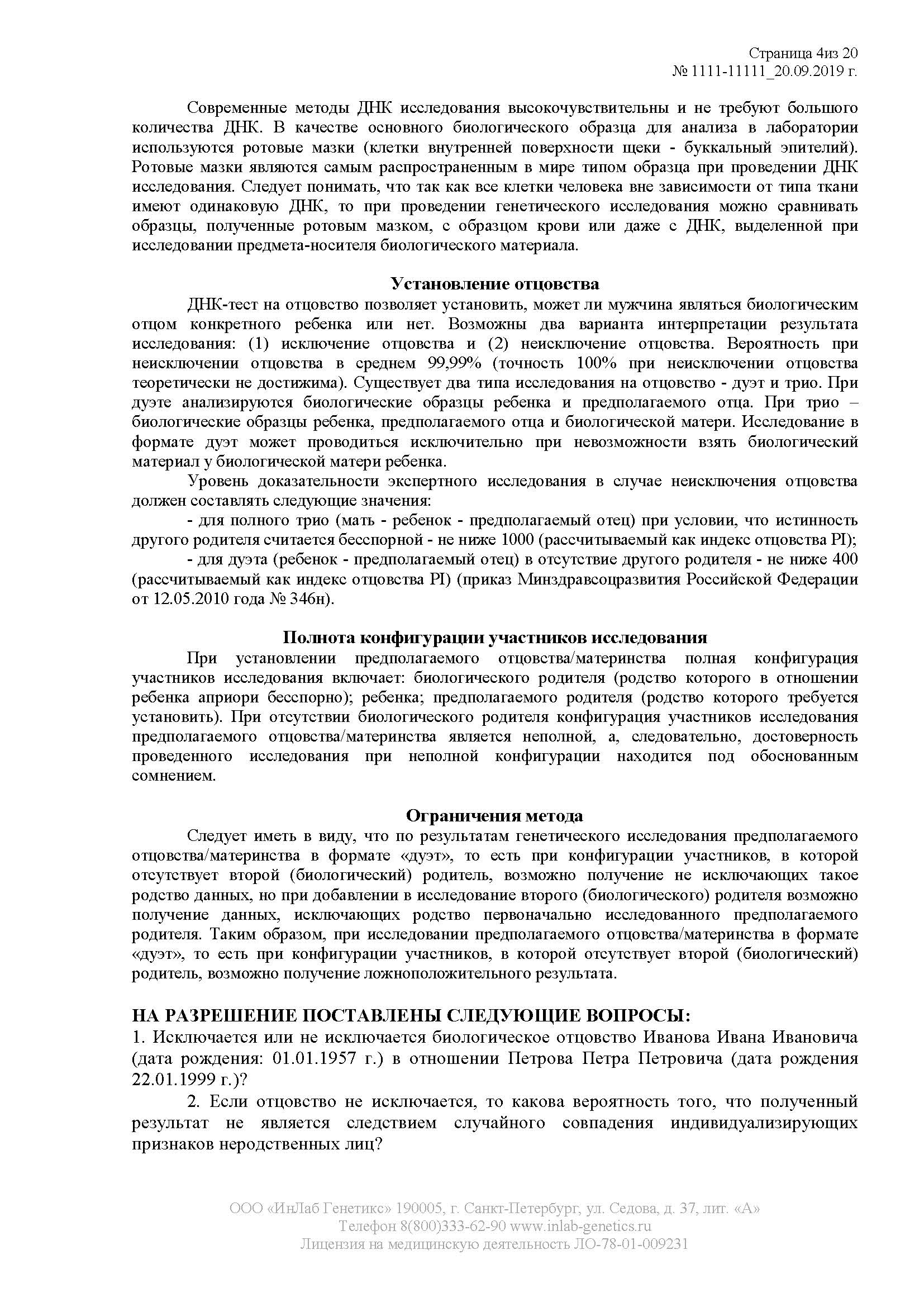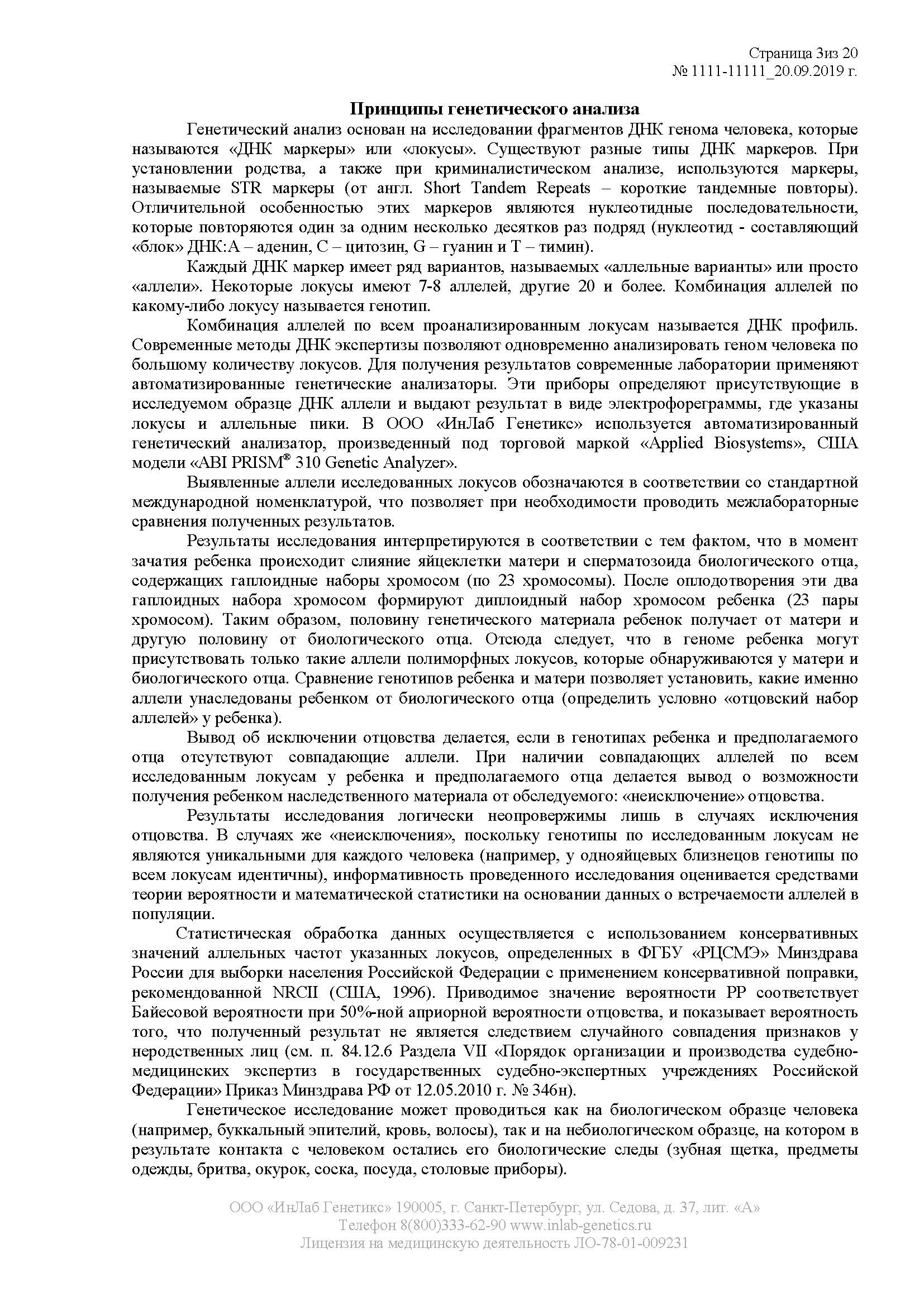 As a result of the genetic examination, a full expert opinion report will be prepared. This is a multi-page stitched document containing all the information necessary for the court, which is certified by the seal of the laboratory and the signature of an expert geneticist. Make a pre-trial paternity test and get a legal document for submission to the court.