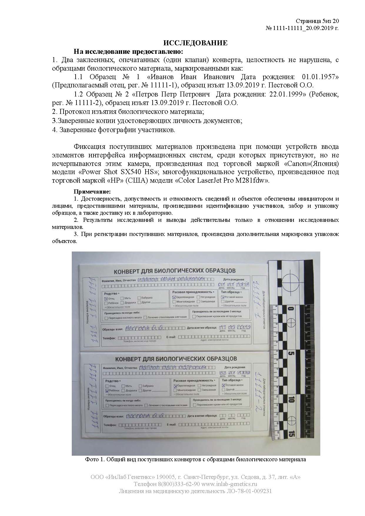 Each order is assigned a unique individual number. The laboratory guarantees 100% safety and confidentiality of all data received from you.