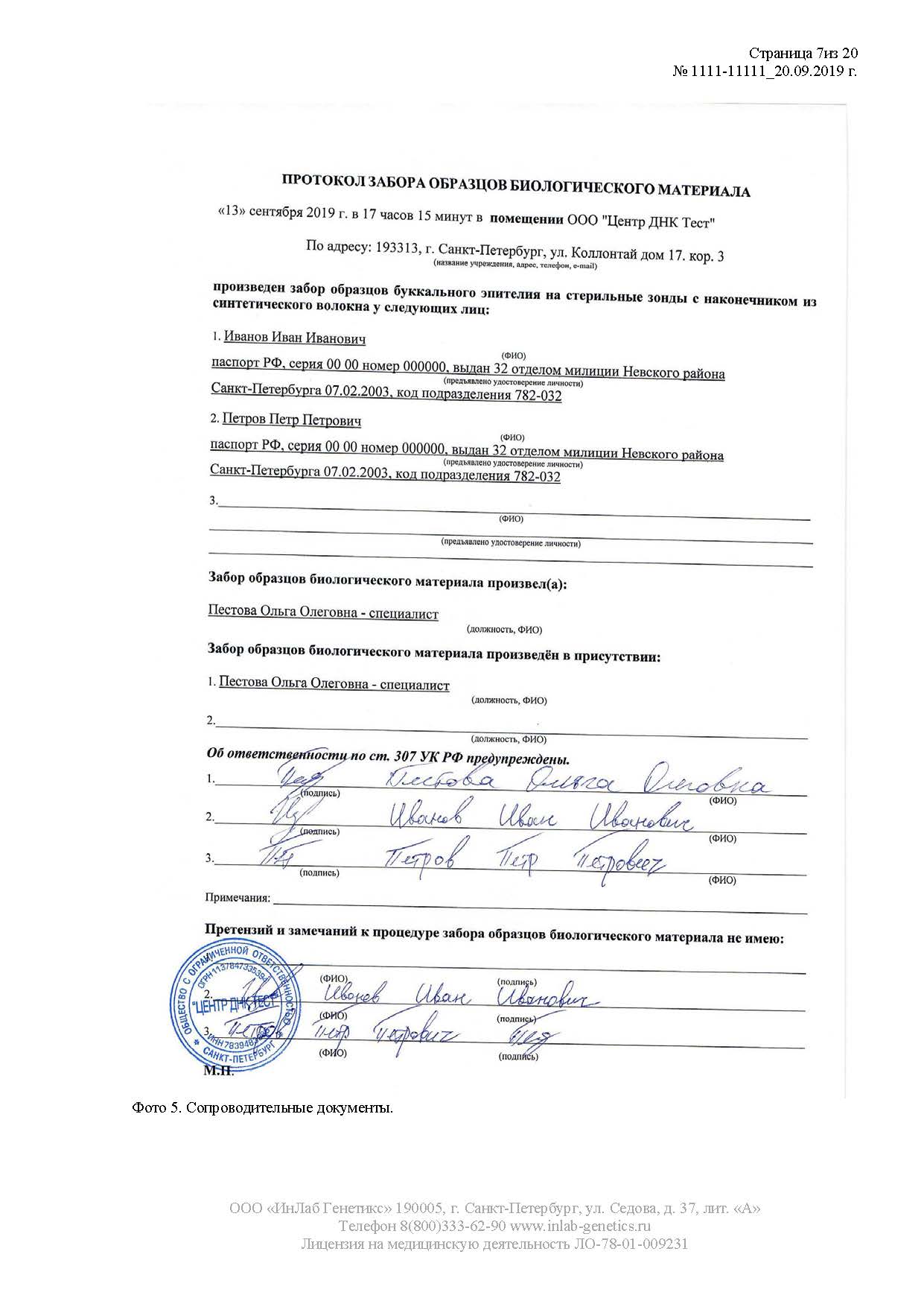 - If you have taken a legal DNA test, we can send the forensic genetic report to the address of the court.