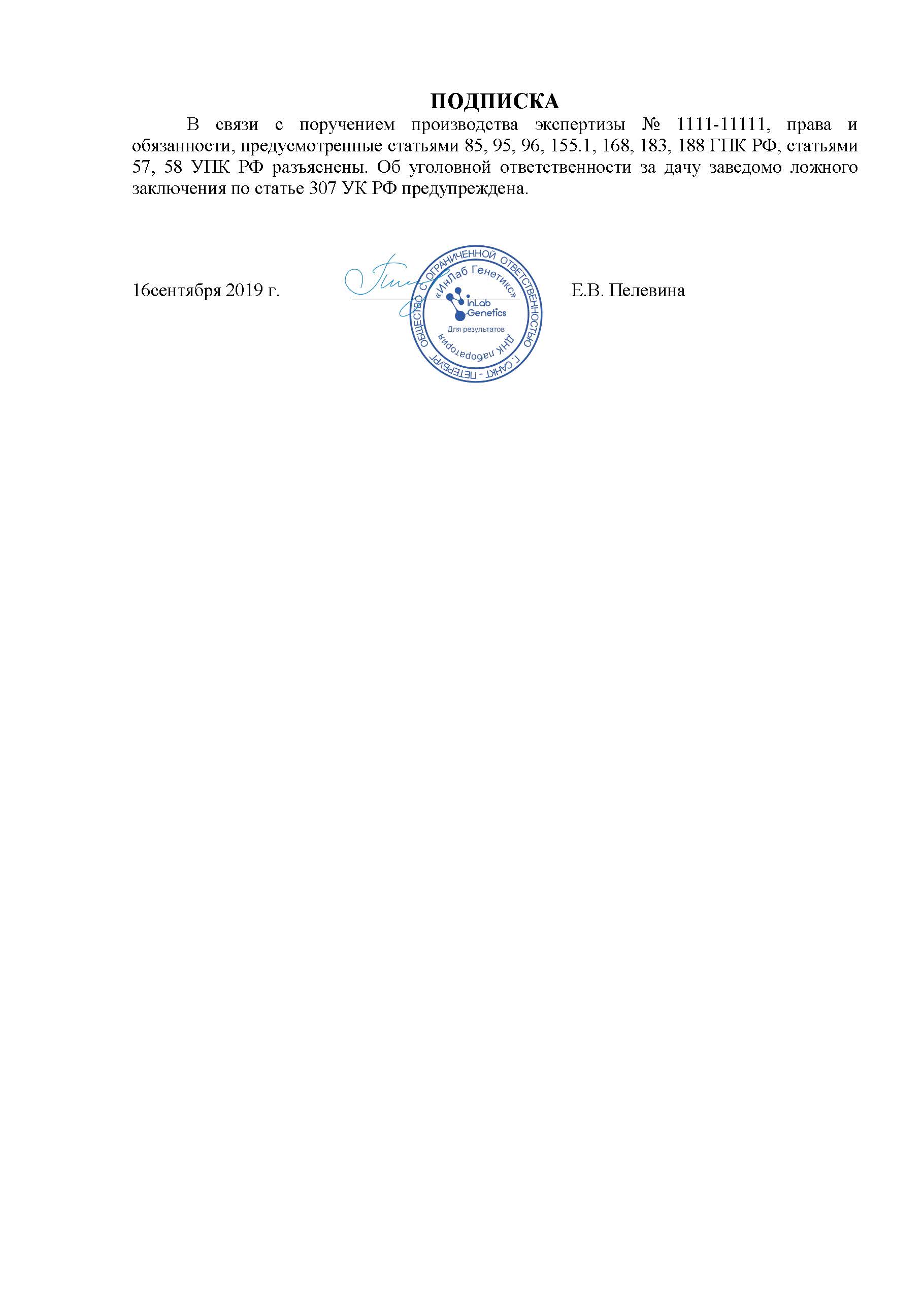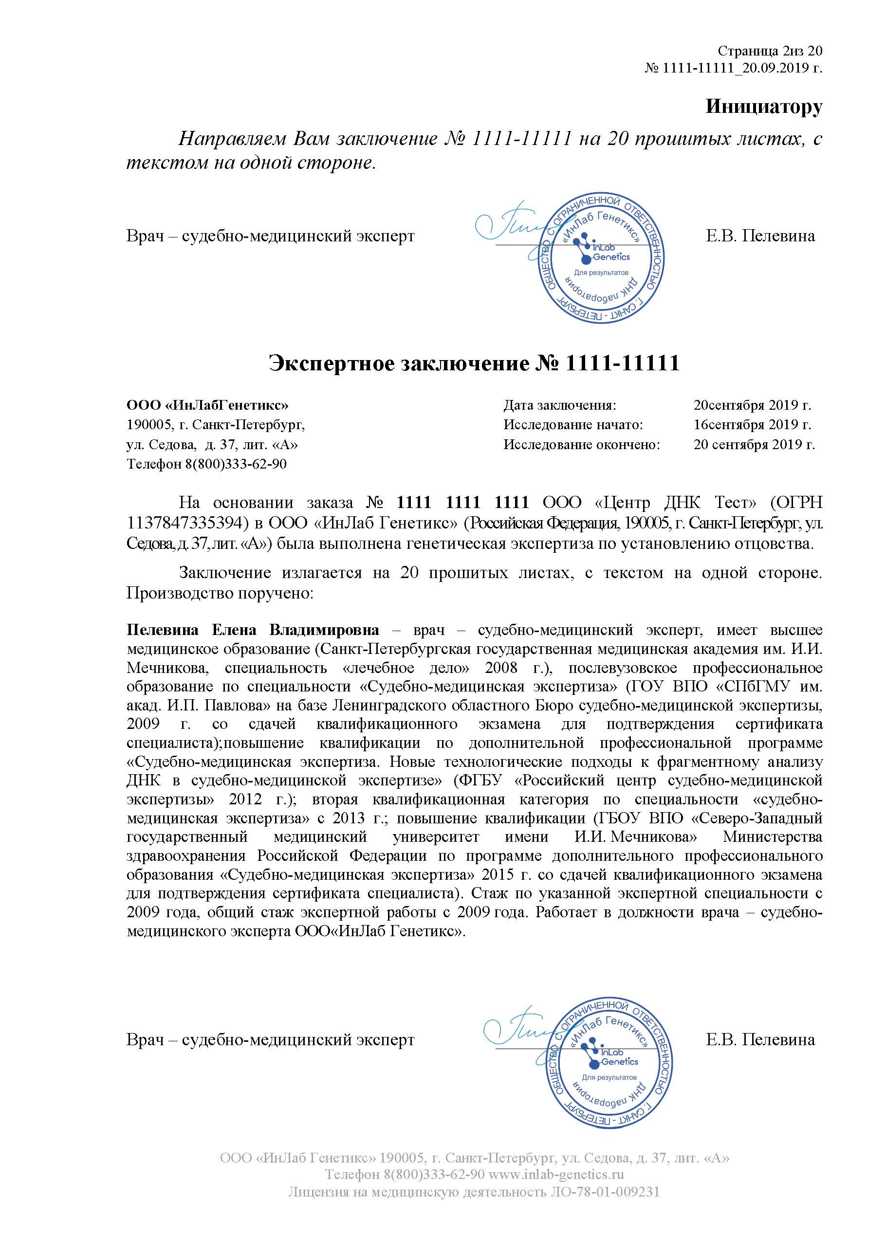- If you have taken a legal DNA test, we can send the forensic genetic report to the address of the court.