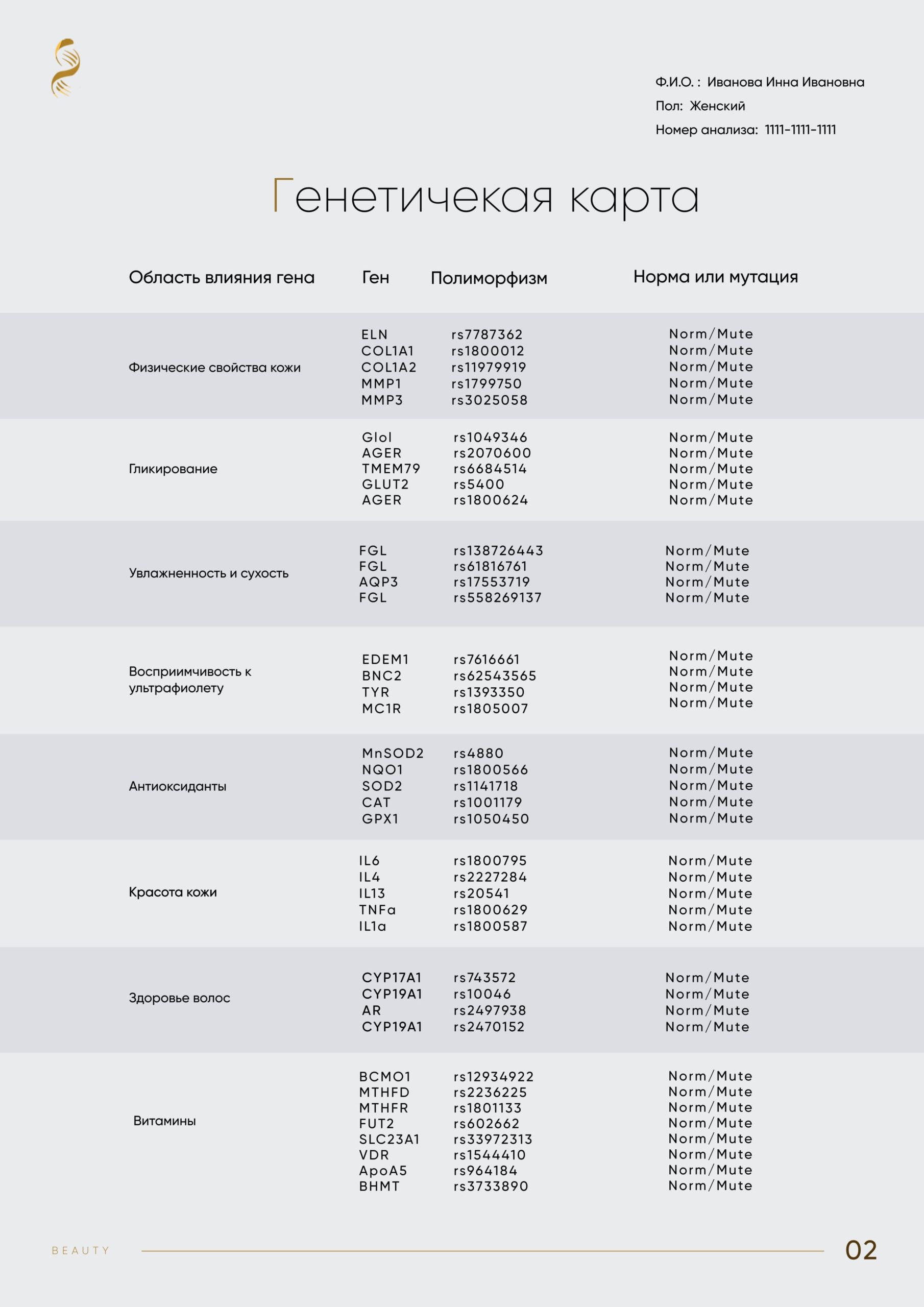 | DNABeauty отчетунун мисалы | Wellness отчетунун мисалы |