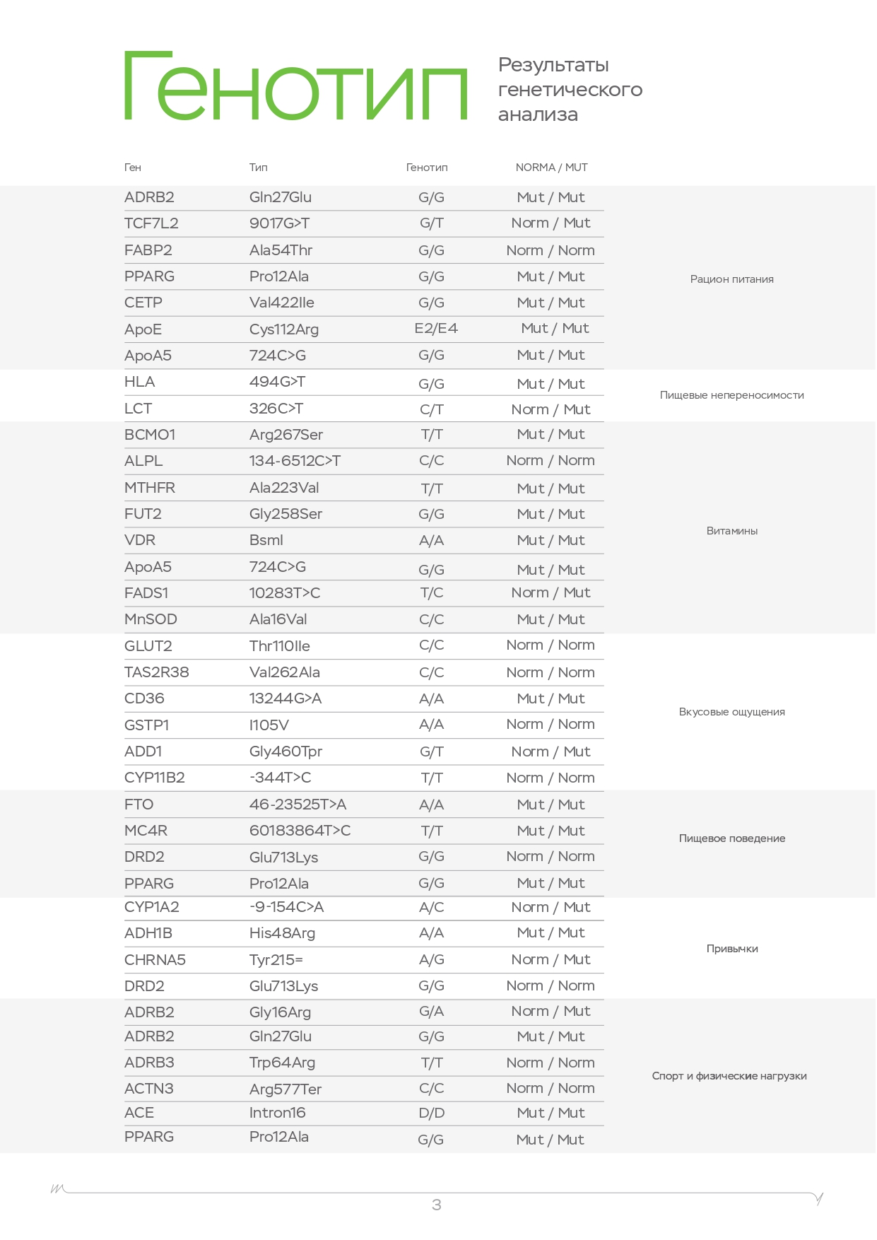 | Отчёт Light (Лайт) | Отчёт Fit (Фигура) | Отчёт Wellness (ЖӨЖ) |