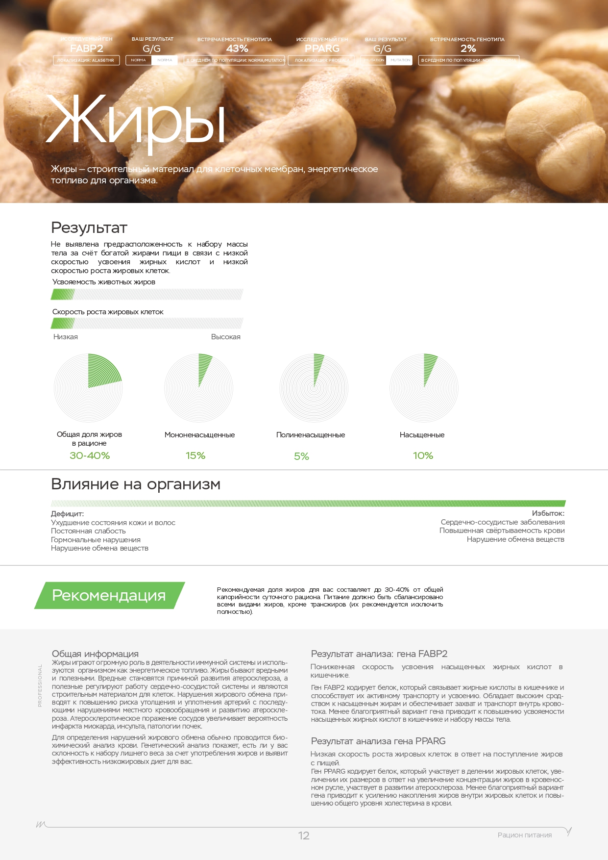 Бул ДНК анализи адамдын генетикалык жактан кандай физикалык активдүүлүккө жакын экенин, ошондой эле кайсы тамактарды (белгилүү бир элементтерди камтыган) керектөө эң жакшы экенин көрсөтөт. Ар бир адамдын өзүнүн максаттары бар: бирөөлөр жөн эле арыктагысы келет, башкалары булчуңдардын күчүн көбөйткүсү келет, үчүнчүлөрү массалык булчуңдарды кургусу келет. Машыгууларыңыздан максималдуу пайда алуу үчүн Бишкек дарегиндеги генетикалык фитнес тестибизден өтүүнү сунуштайбыз.