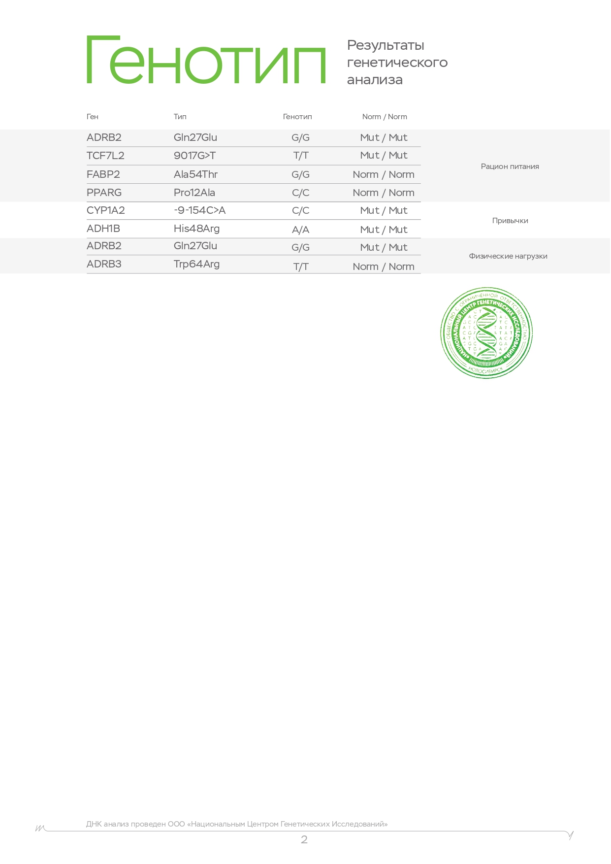 | Отчёт Light (Лайт) | Отчёт Fit (Фигура) | Отчёт Wellness (ЖӨЖ) |