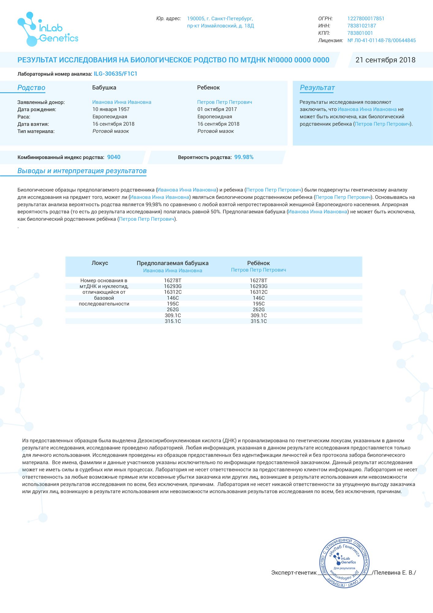 Аял линиясы үчүн ДНК анализинин жыйынтыктарынын абсолюттук тактыгын камсыз кылуу үчүн лаборатория адистердин ар кандай топтору тарабынан эки параллелдүү анализ жүргүзөт. Андан кийин натыйжалар лабораториянын жетекчисинин колу жана мөөрү менен күбөлөндүрүлөт.