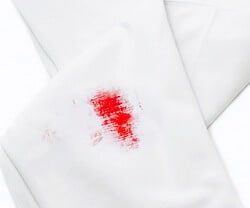 Эреже катары, бул кездемеде, кагазда же башка беттерде кургатылган кан тактары. Аларды таза кагаз конвертке салыңыз. Аларды нымдап албоо жакшы.